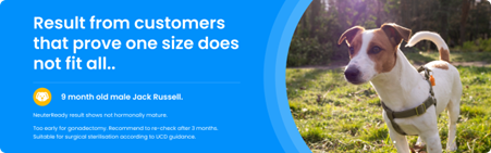 InsituGen's NeuterReadyTM diagnostic test represents a major evolution in neutering decision-making. Rather than relying on age-based assumptions, NeuterReadyTM measures functional androgen activity using a patented bioassay and can definitively guide whether a dog has reached hormonal maturity.